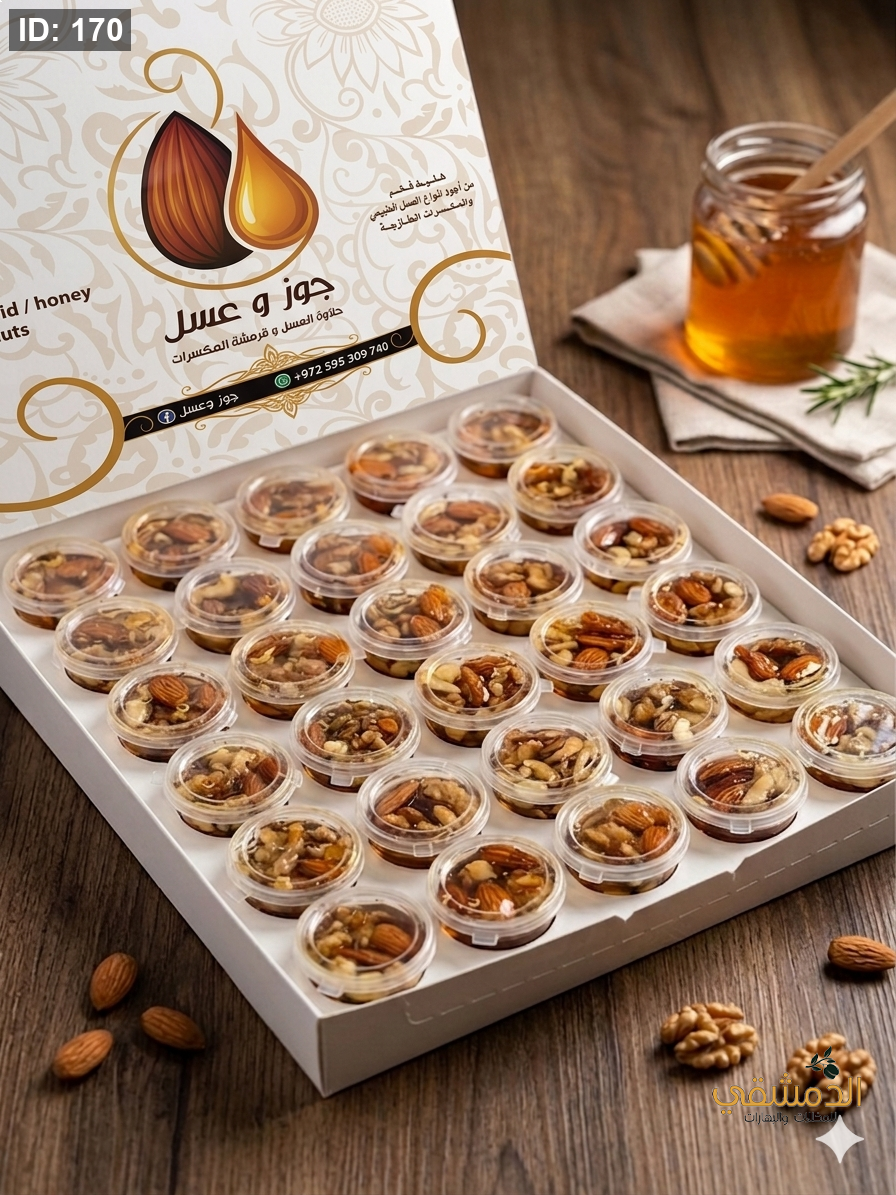 يشمل 30 علبة عسل طبيعي مع مكسرات بداخل كل علبة 33 غرام